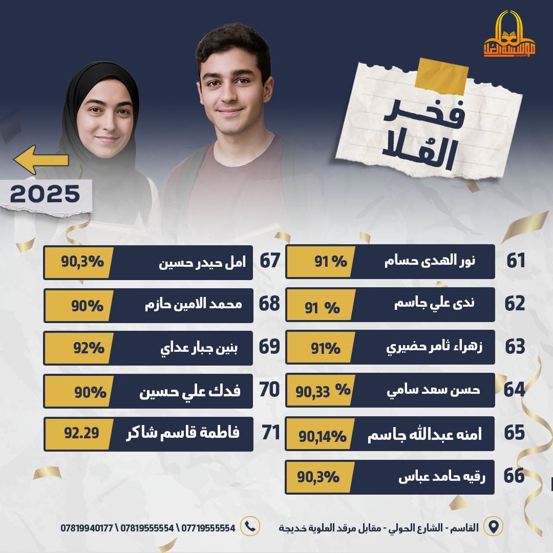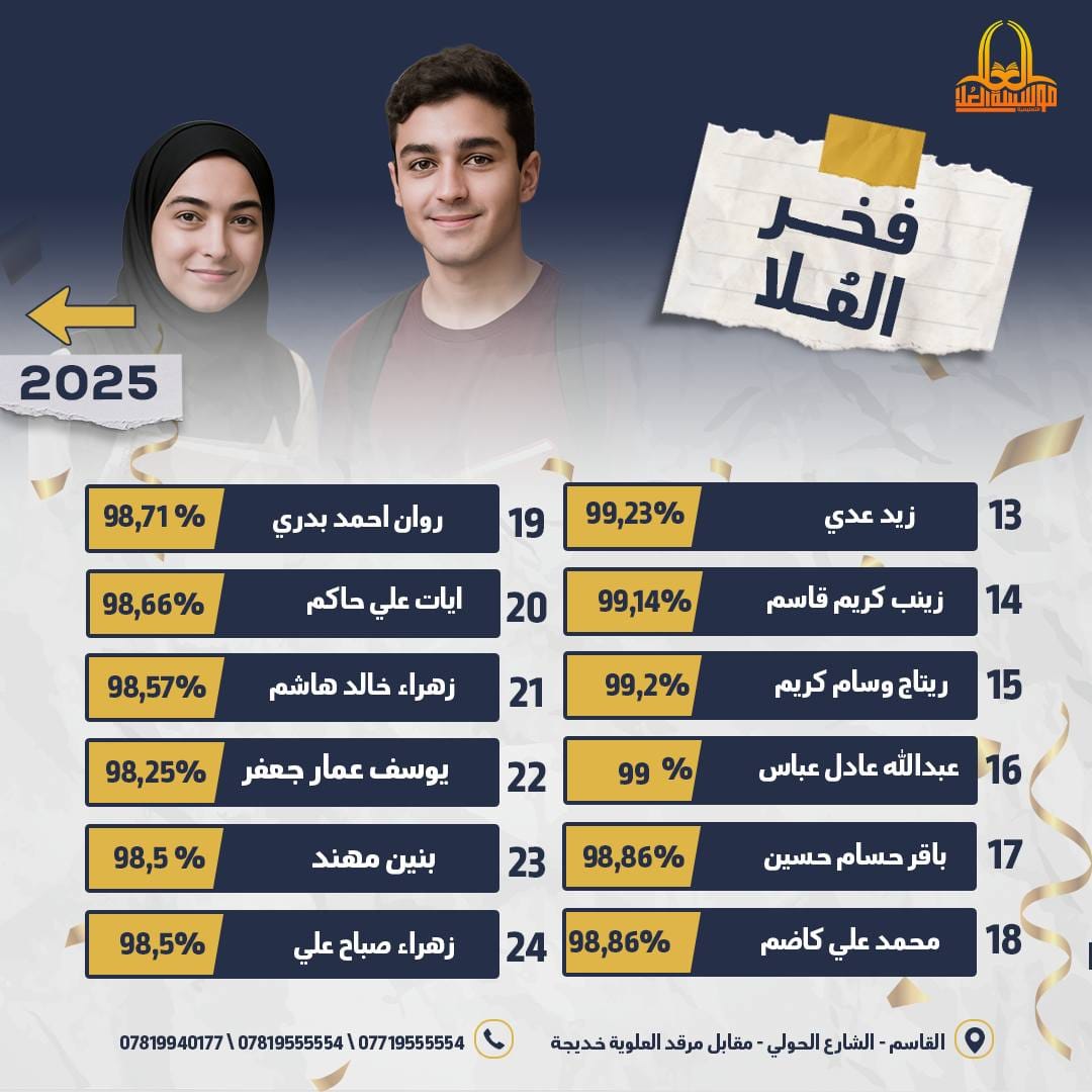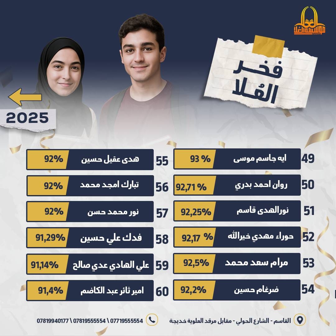 فخر العُلا هنا تُصنع القمم… وهؤلاء هم أبطالنا الذين رفعوا اسم المؤسسة على مستوى المحافظة شكرًا لكوادرنا التربوية المخلصة، ولطلبتنا الأبطال، ولذويهم الداعمين دومًا تفوقكم وسام نعتز به